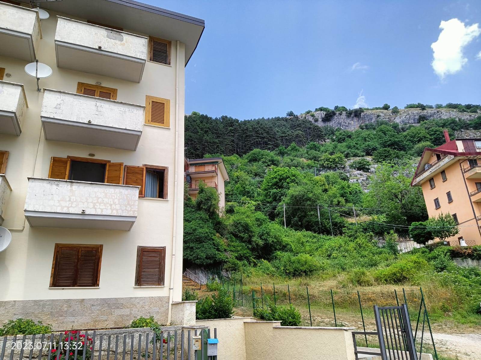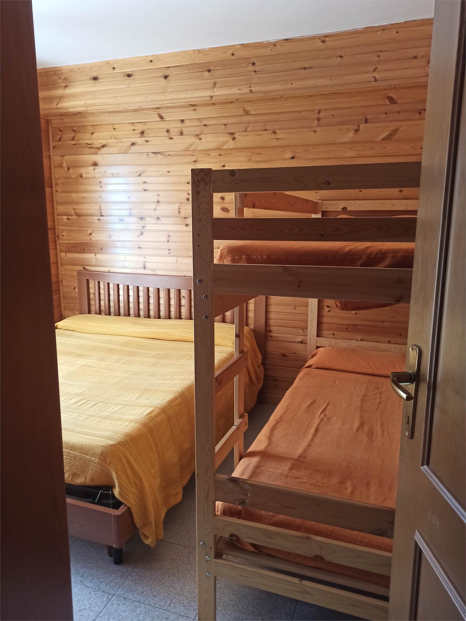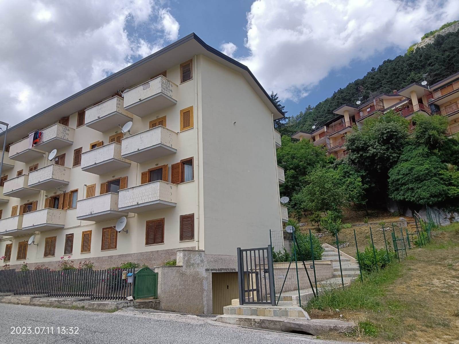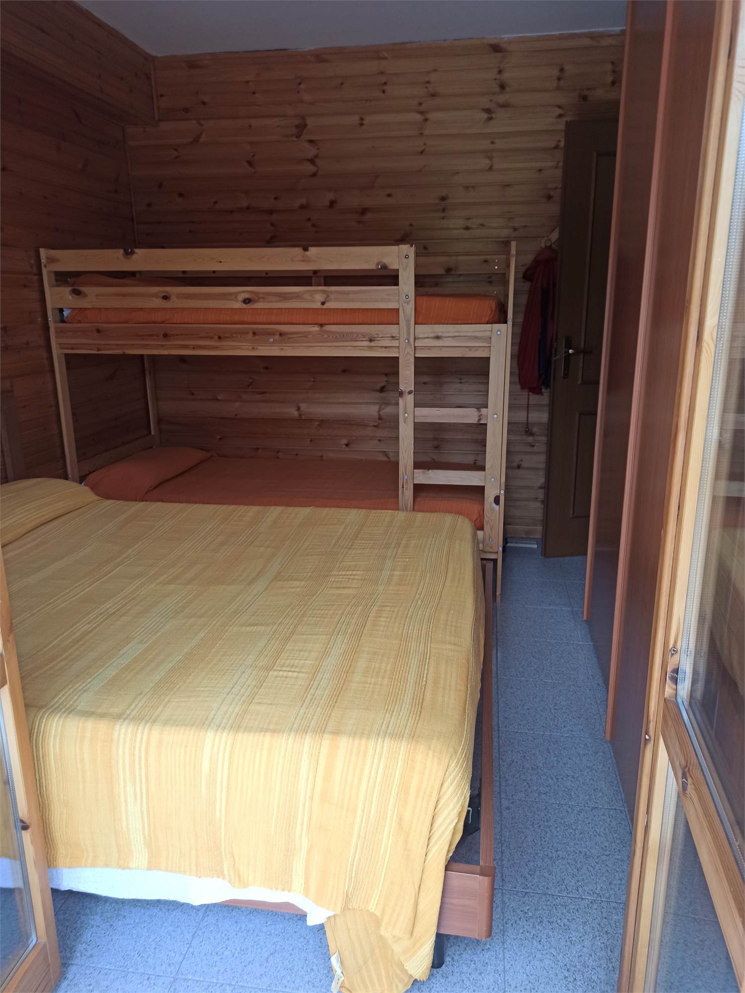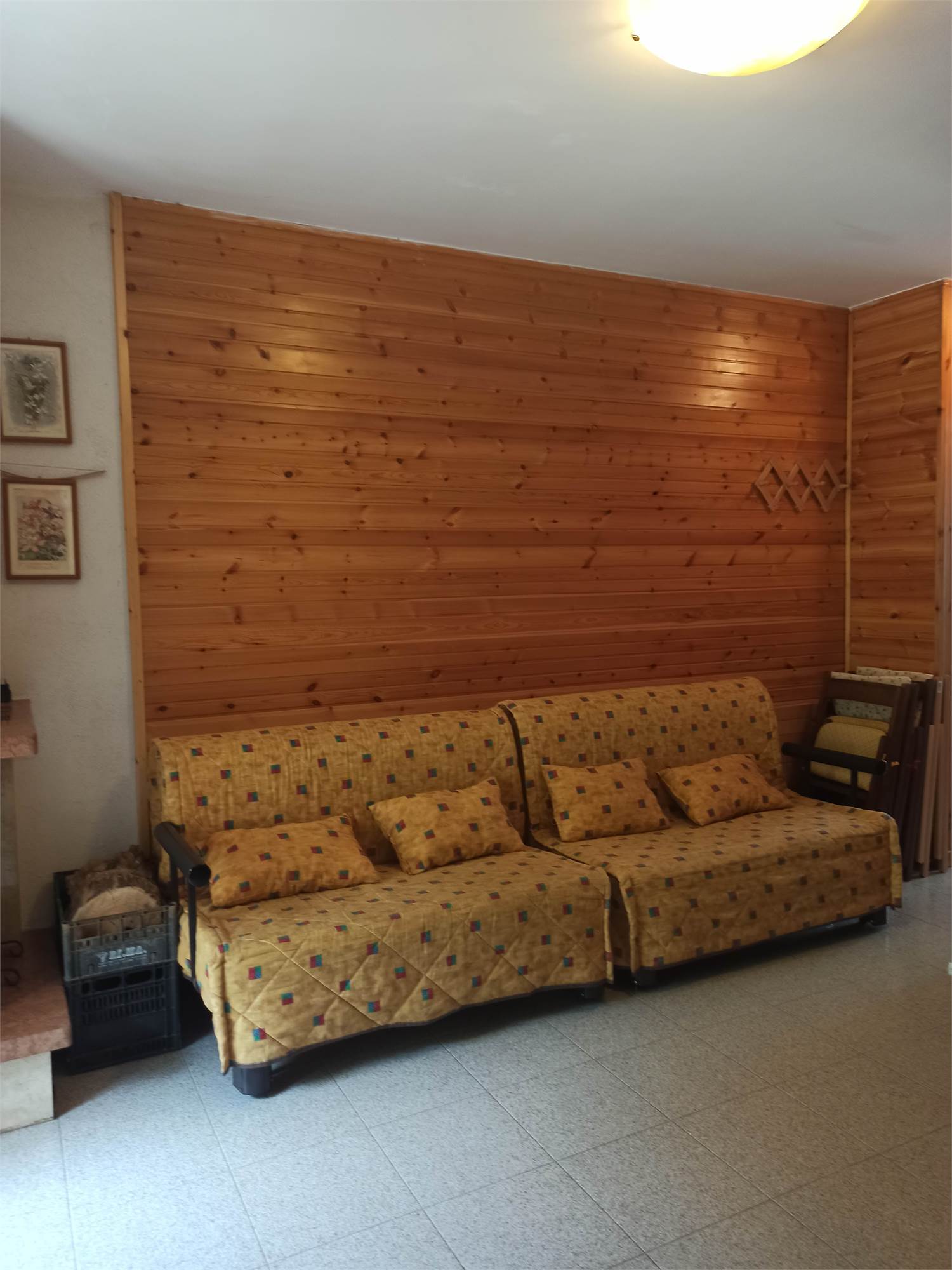 L' appartamento rivestito in legno come i tipici chalet del posto, è un primo piano di mq 56, con due balconi di circa mq 3.0 l'uno, ed è composto da sala con splendido camino angolare, angolo cottura completo di elettrodomestici, arredato con cristalliera, tavolo allungabile, sedie ed un divano letto, qui presente il primo balcone; un ampia camera da letto arredata con un letto matrimoniale ed un letto a castello, armadio in legno a sei ante ed un secondo balcone; un comodo bagno con doccia e finestra; un armadio a muro.