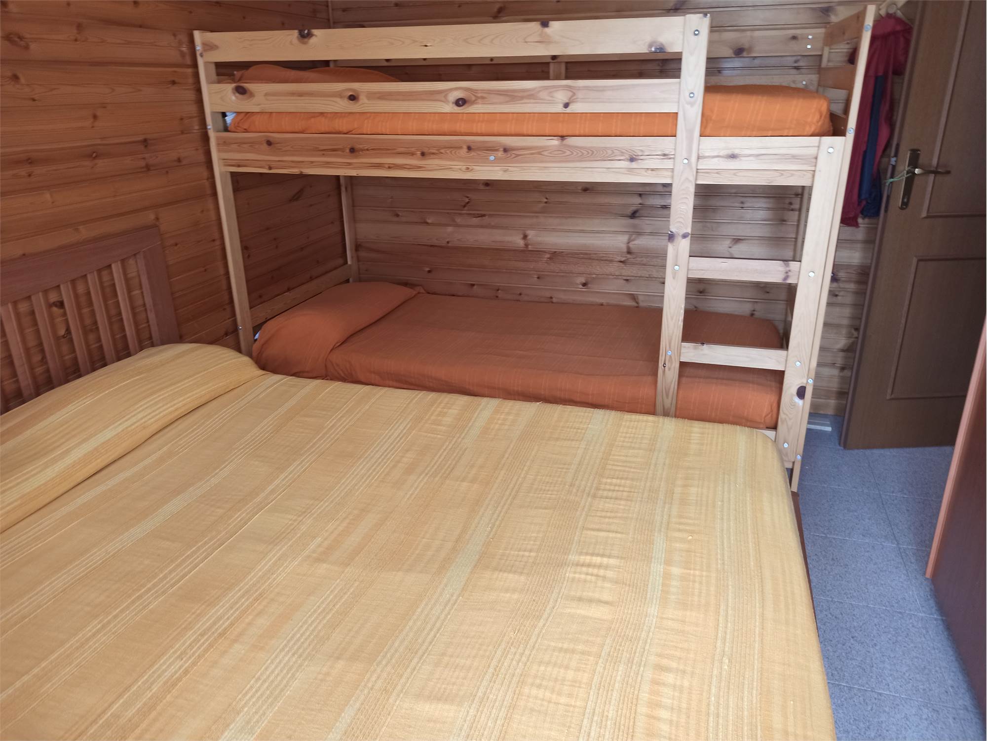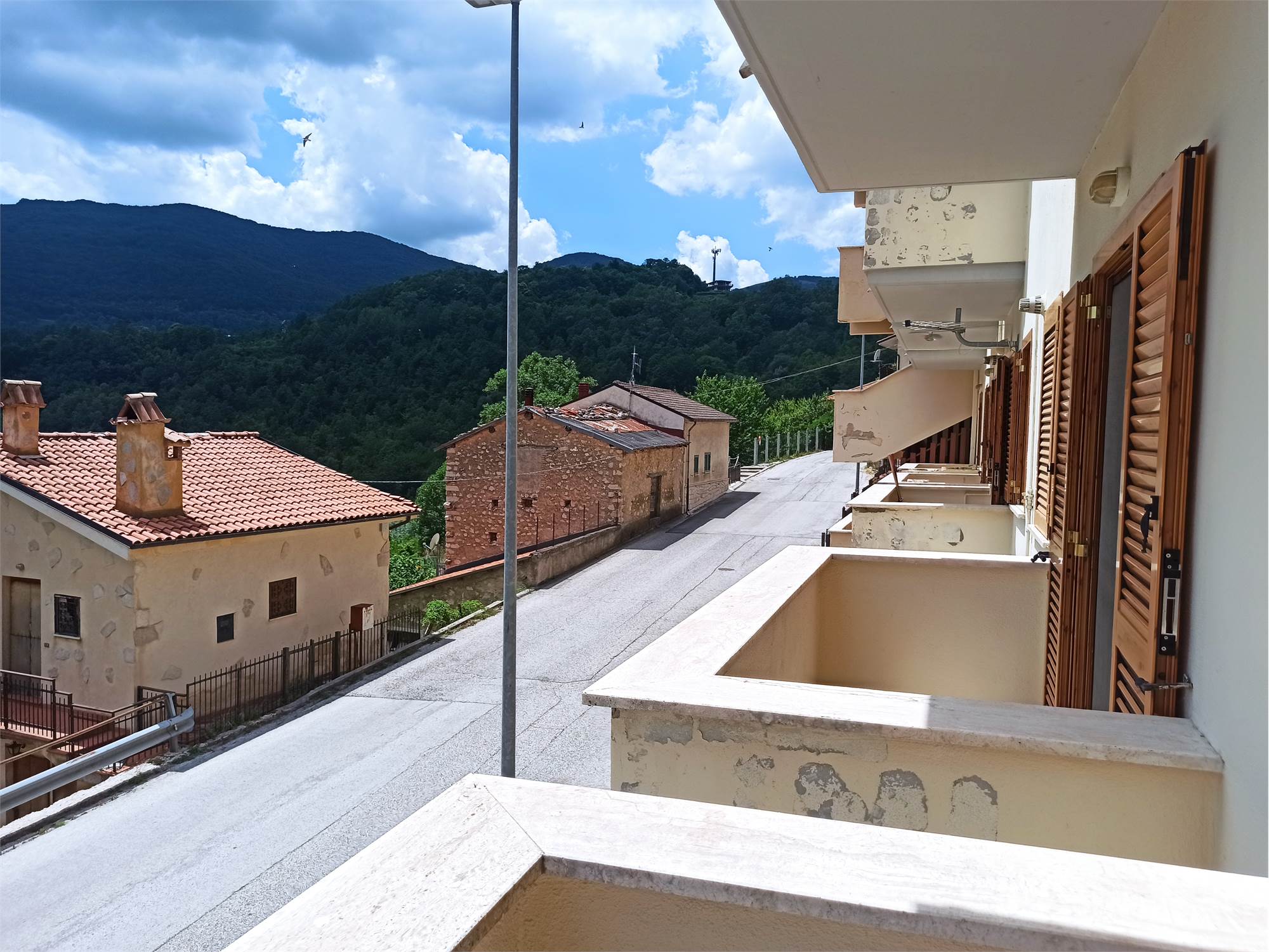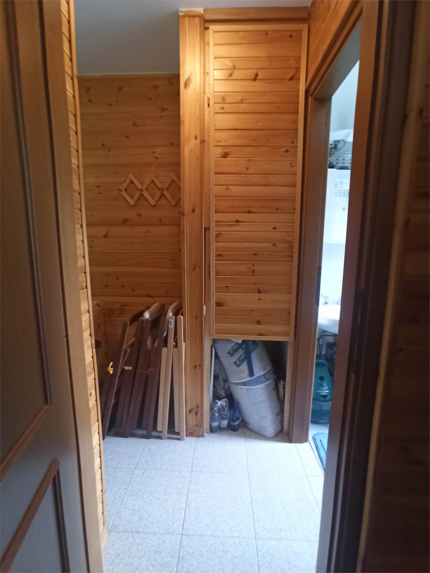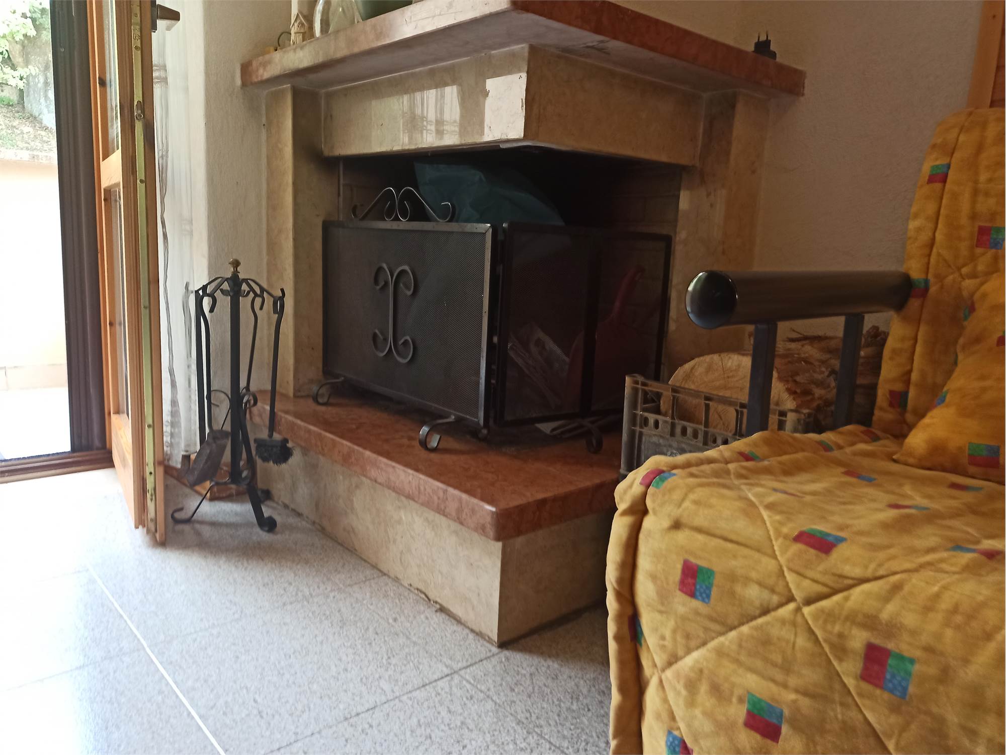 L' appartamento rivestito in legno come i tipici chalet del posto, è un primo piano di mq 56, con due balconi di circa mq 3.0 l'uno, ed è composto da sala con splendido camino angolare, angolo cottura completo di elettrodomestici, arredato con cristalliera, tavolo allungabile, sedie ed un divano letto, qui presente il primo balcone; un ampia camera da letto arredata con un letto matrimoniale ed un letto a castello, armadio in legno a sei ante ed un secondo balcone; un comodo bagno con doccia e finestra; un armadio a muro.